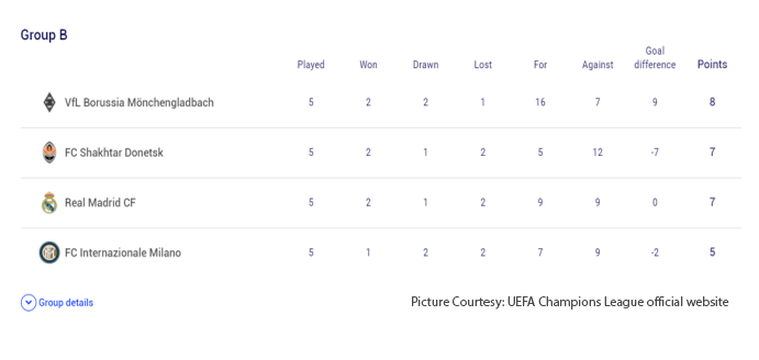 The team from Germany find themselves at the top of Group B as things stand and take on Zidane’s men in their final match. A win against Madrid would put them top of the group irrespective of the result in the other fixture. But if M’Gladbach were to lose their game they need the matchup between Inter and Shakhtar to end in a draw. If one of the two teams between Inter and Shakhtar were to win, M’Gladbach would be heading to the Europa League.